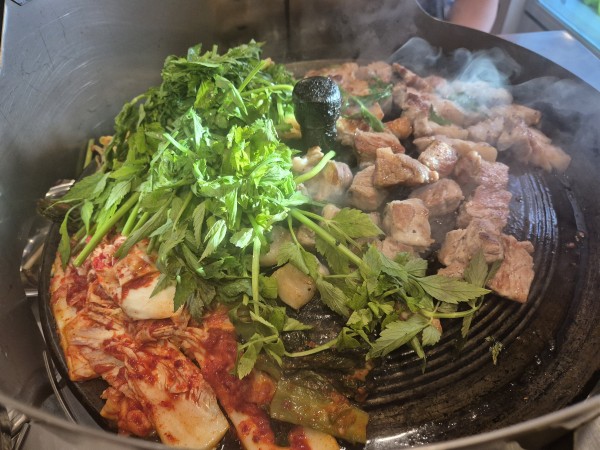 아뿔사... 미나리까지 얹어서 고기 냄새가